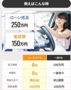 他社買取店の場合、ローン残高170万円。査定額105万円だった場合、65万円を自己負担しないと買取って頂けません。